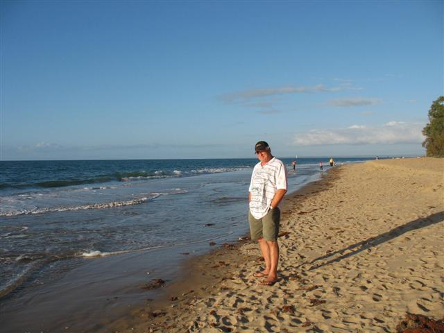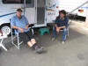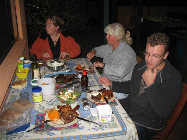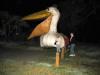 Na het afscheids diner een foto bij de reuze pelikaan |