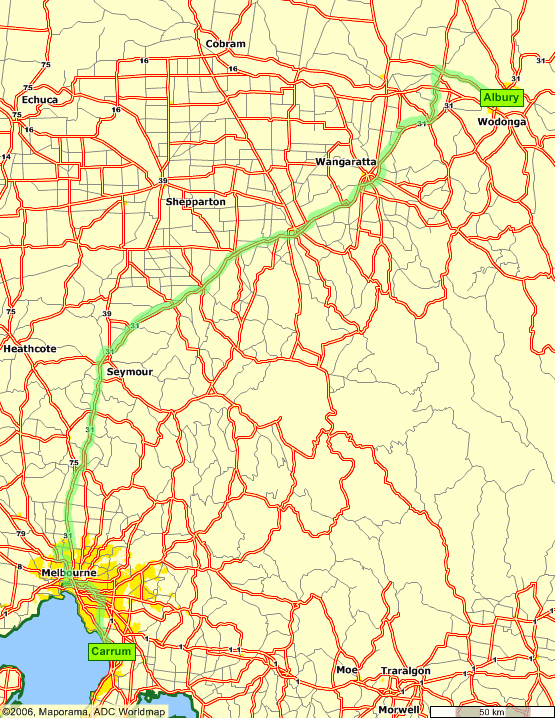 Nog maar 238 km naar Melbourne |